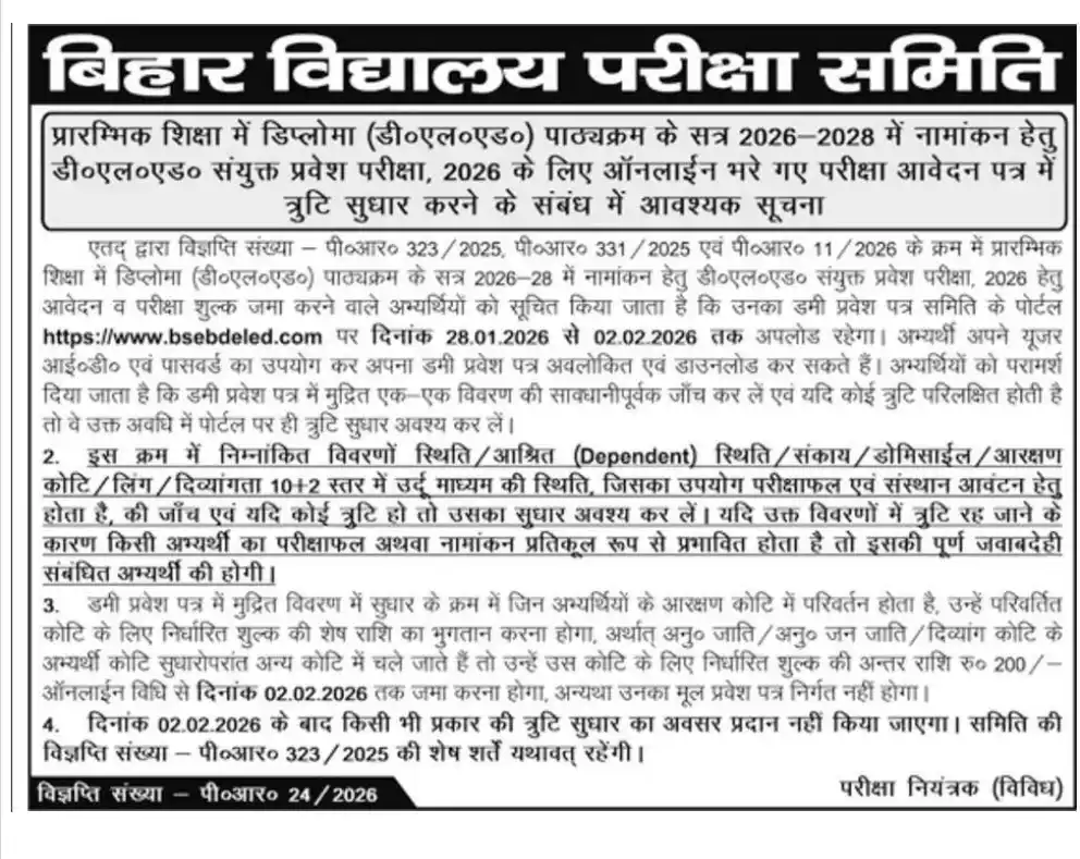 For more complete information, please read the BSEB Bihar DElEd Notification 2026.